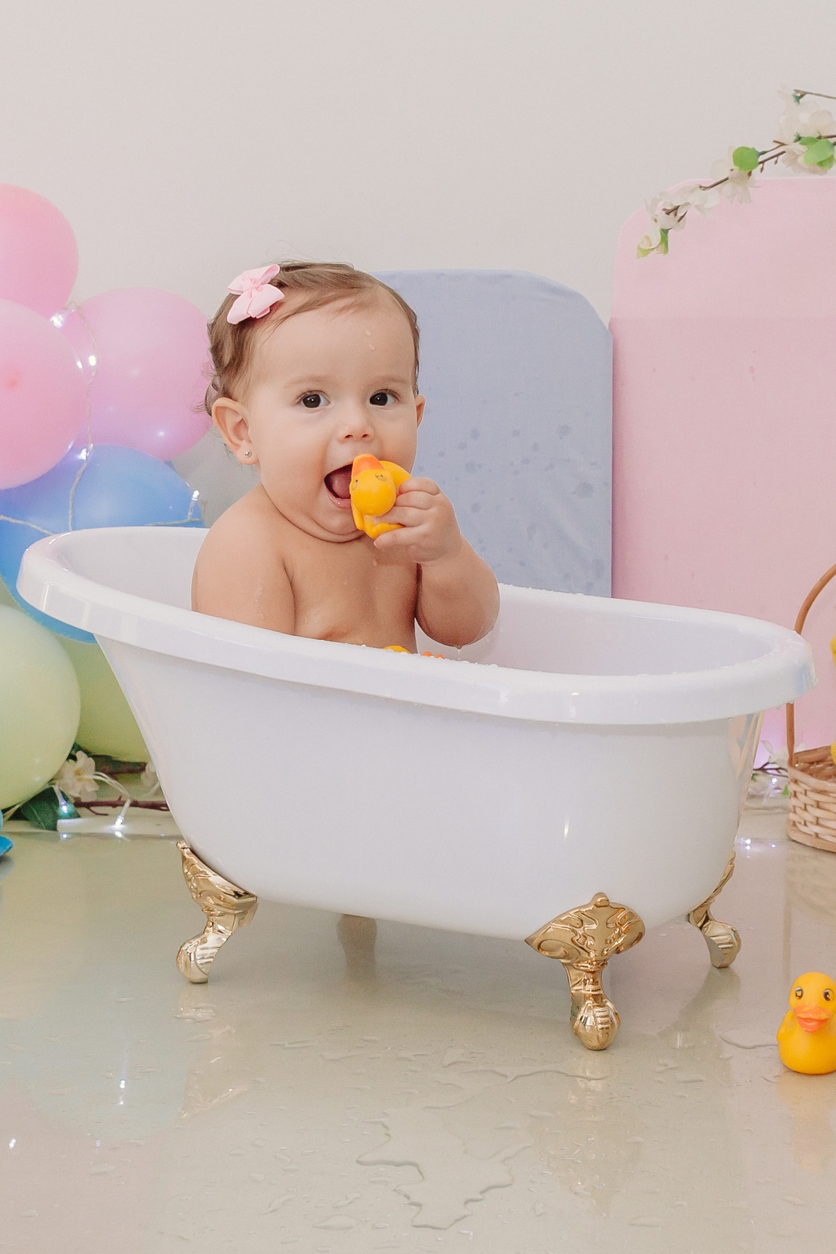 Em um cenário minimalista, o bebê é o verdadeiro protagonista. Suas expressões de surpresa, alegria e curiosidade ao explorar o bolo são capturadas de maneira mais autêntica. A simplicidade do ambiente permite que cada gesto e cada sorriso se destaquem, criando memórias sinceras e emocionantes.